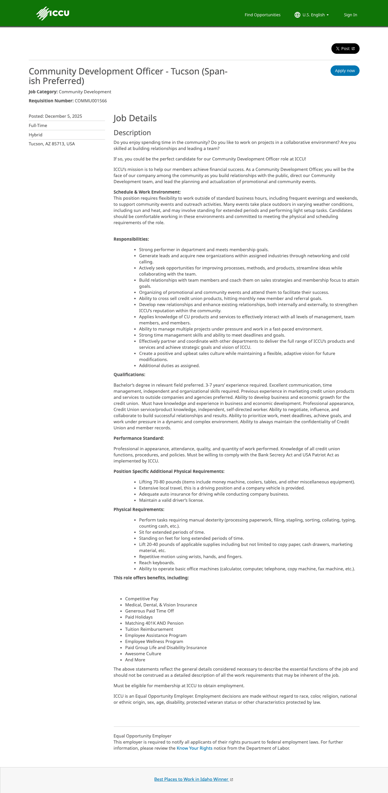 ICCU - Community Development Officer - Tucson (Spanish Preferred)